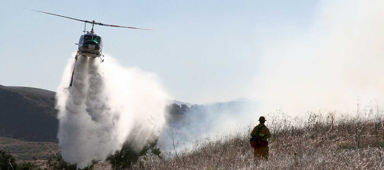 Wildland fire response is not just contained to the ground. Another key domain that is leveraged during wildfire response is the air, where helicopters and planes provide critical, operational support through above-ground monitoring and water deposits.