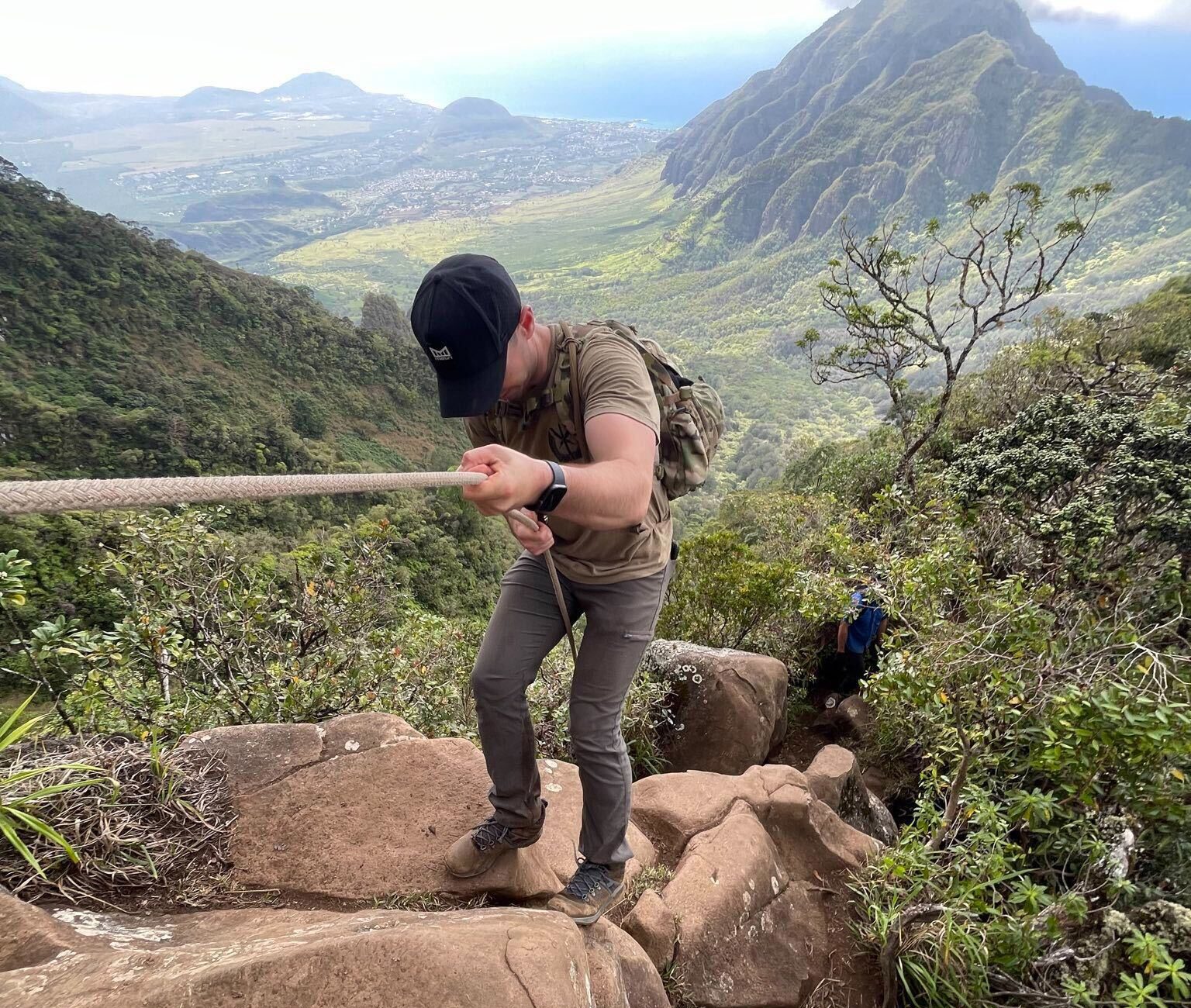 Kolton Copple: The thing about the jungle penetration testing was that it almost worked too well, so we couldn’t find a limit. At one point, we were headed up Mt. Ka’ala. Two operators and I hiked over 4,000 feet to the top. The trail is brutal, about six miles round trip. We’re talking remote, middle of the island, middle of the jungle, and climbing up rocks. It was pretty insane to hike up there.